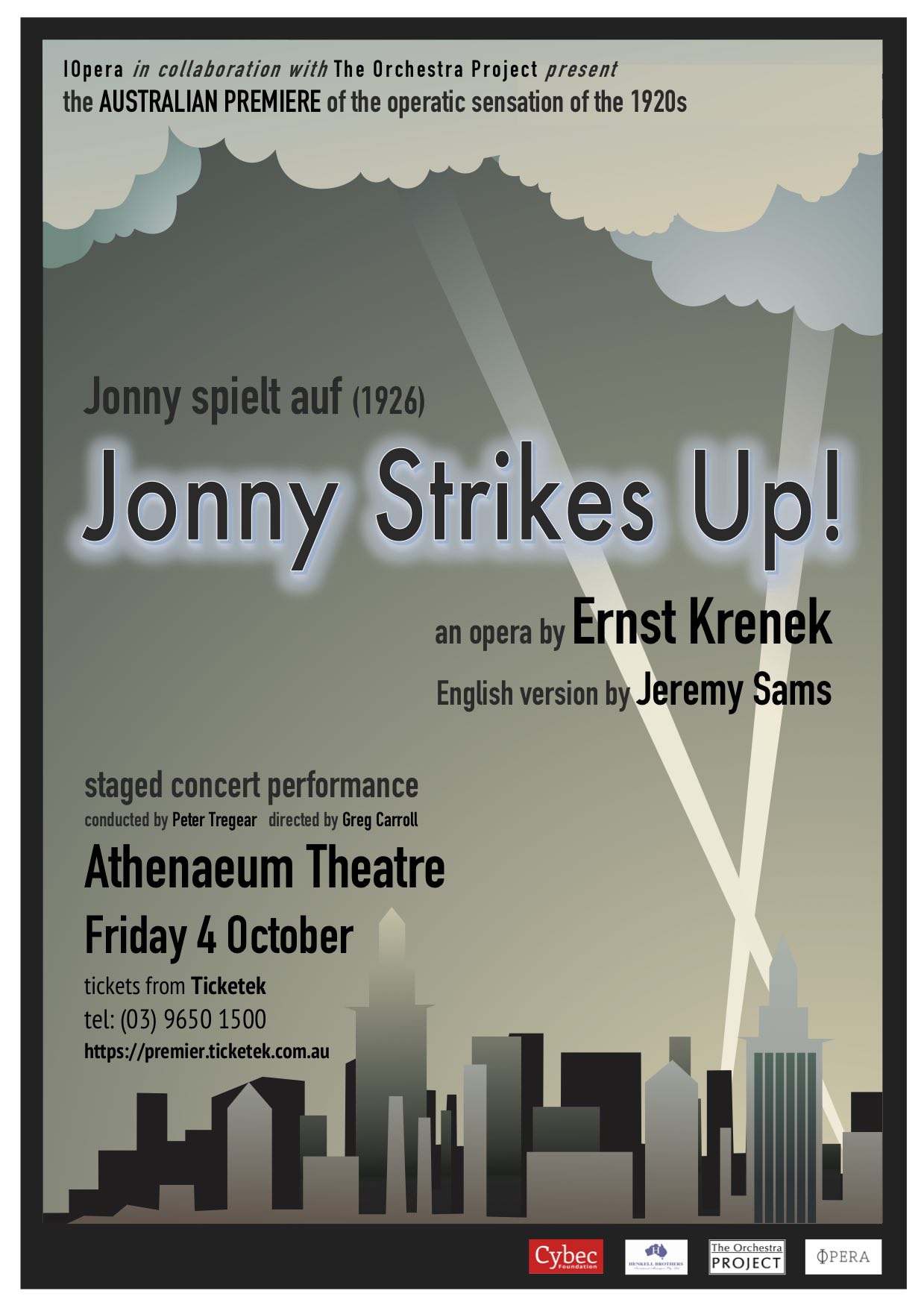A Media Release about the Australian premiere performance of Ernst Krenek's 'Jonny spielt auf' [Jonny Strikes Up!] in October 2019 can be downloaded **here.**