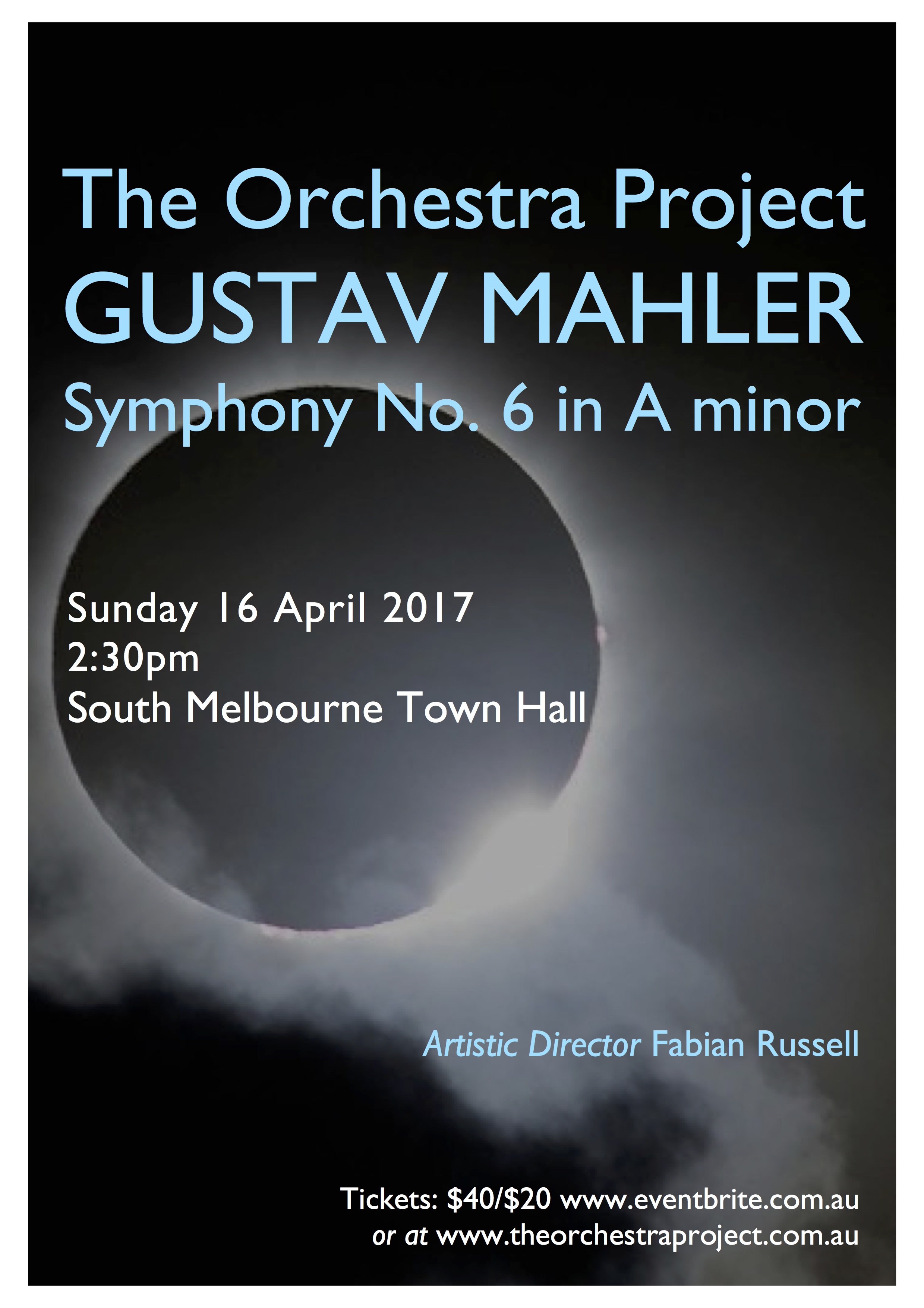A review of our major 2017 project, a performance of Mahler's 6th Symphony on 16 April 2017, can be found **here.**