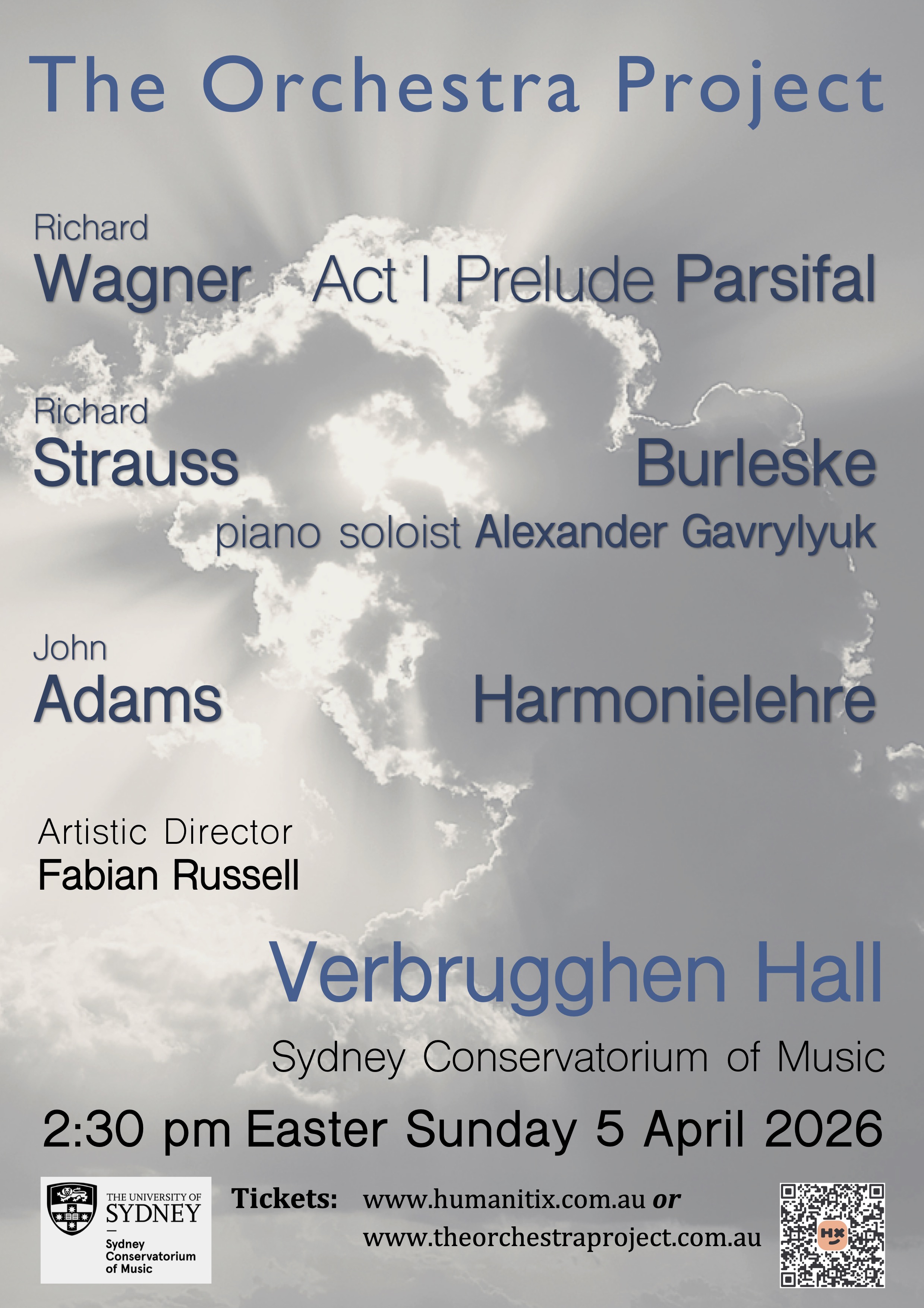 On Sunday 5 April 2026 at 2:30 pm The Orchestra Project returns to Verbrugghen Hall, Sydney Conservatorium of Music to perform music by Wagner, Strauss (soloist Alexander Gavrylyuk), and John Adams).